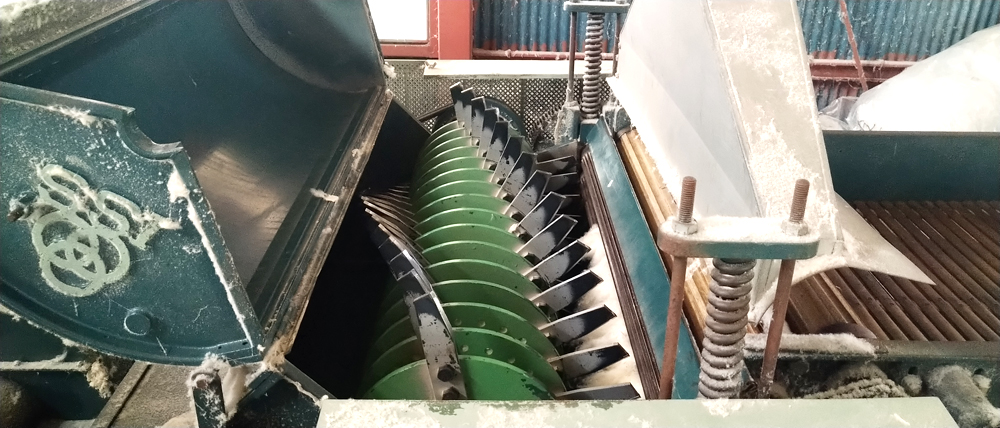 まずは古くなった綿を開綿機で細かく砕いていきます。